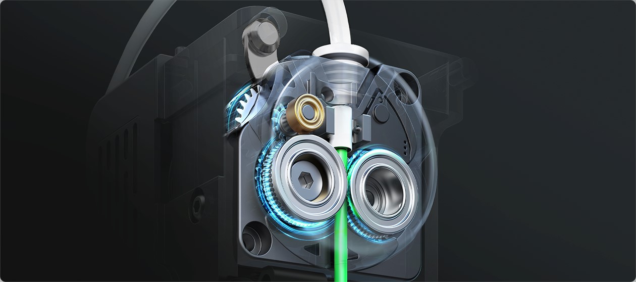Ce kit d'extrusion directe est optimisé par un ressort de renfort et un piston à bille, garantissant plus de 1 000 heures d'extrusion sans obstruction. La buse et le bloc de chauffe sont intégrés pour limiter la diffusion de la chaleur et faciliter leur remplacement. L'embout de la buse est en acier trempé, permettant une extrusion fiable des filaments techniques haute résistance en carbone. Un élément chauffant en céramique de 60 W entoure la tête d'impression, assurant une fusion rapide et complète des filaments ABS, PETG, PLA-CF et autres filaments haute température.