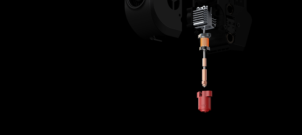 Un puissant élément chauffant en céramique entoure l'élément chauffant. Il permet de faire fondre instantanément l'ABS, le PETG et autres filaments haute température.